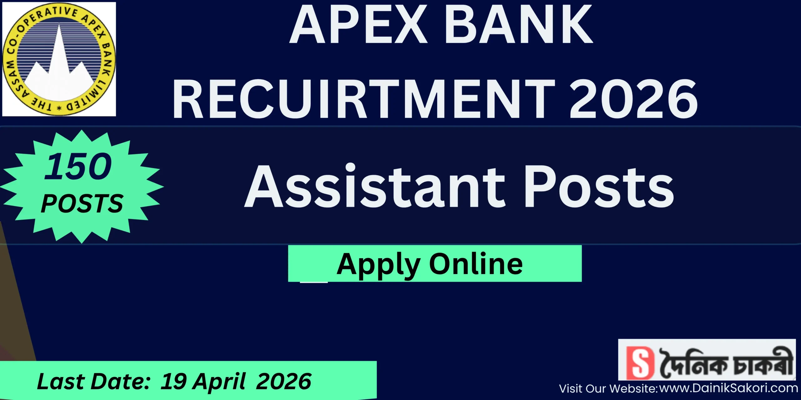 Apex Bank Recruitment 2026 – Apply Online for 150 Assistant Posts The Assam Co-Operative Apex Bank Limited has released a new job notification for 150 Assistant posts. Interested ...