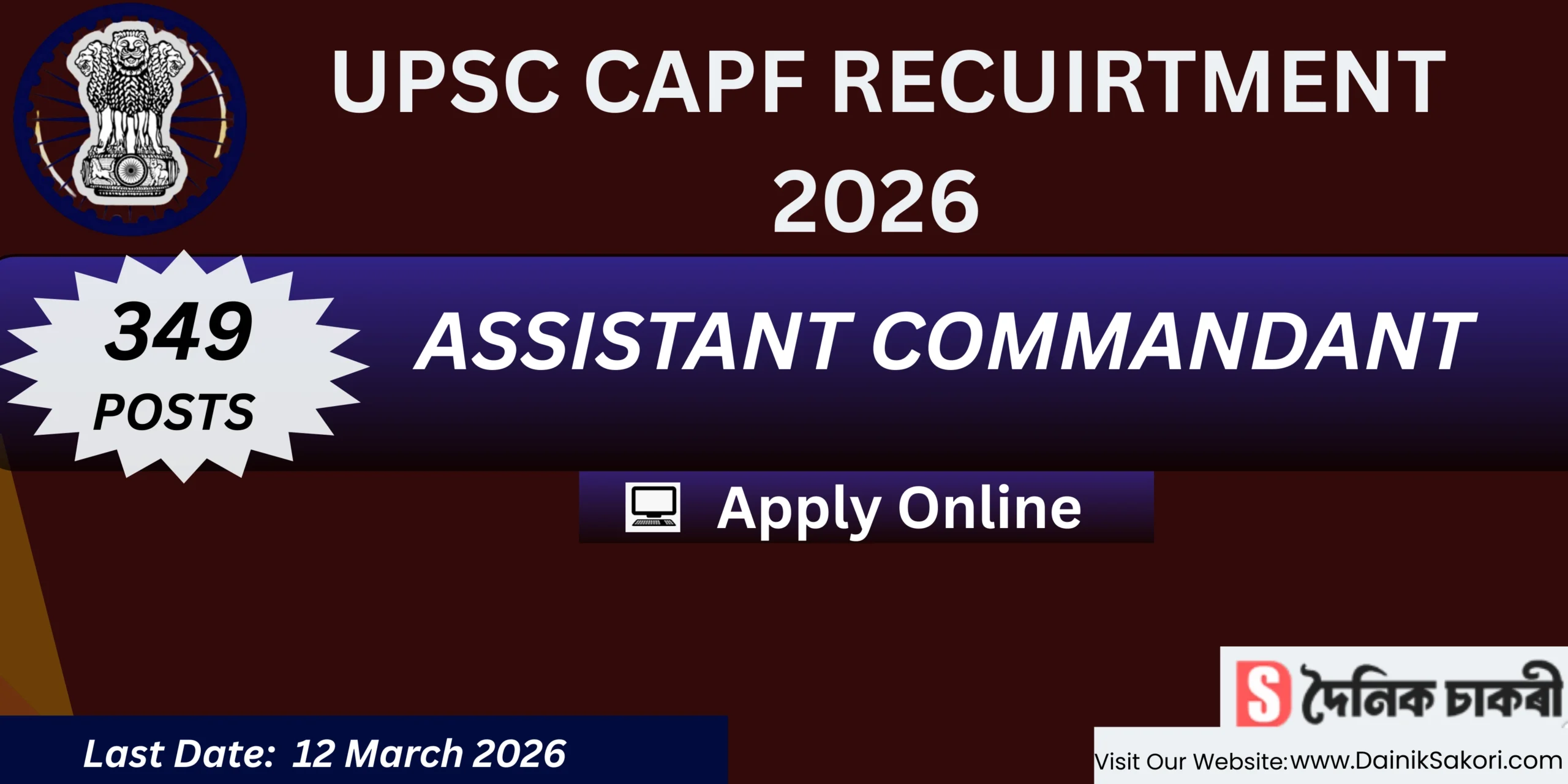 The Union Public Service Commission (UPSC) has released a new job notification for Central Armed Police Forces (CAPF) Examination 2026. Through this exam, 349 Assistant Commandant (Group A) posts will be filled in different forces. Interested and eligible candidates can apply online here before the last date.